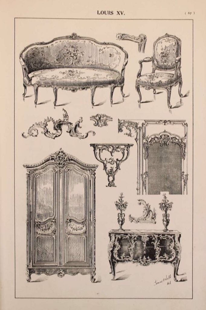 عناصر من الطراز في الأثاث والأخشاب ويجري سلسلة من التفاصيل من عصر النهضة الإيطالية الألمانية الإليزابيثية لويس الرابع عشر لويس الخامس عشر لويس السادس عشر